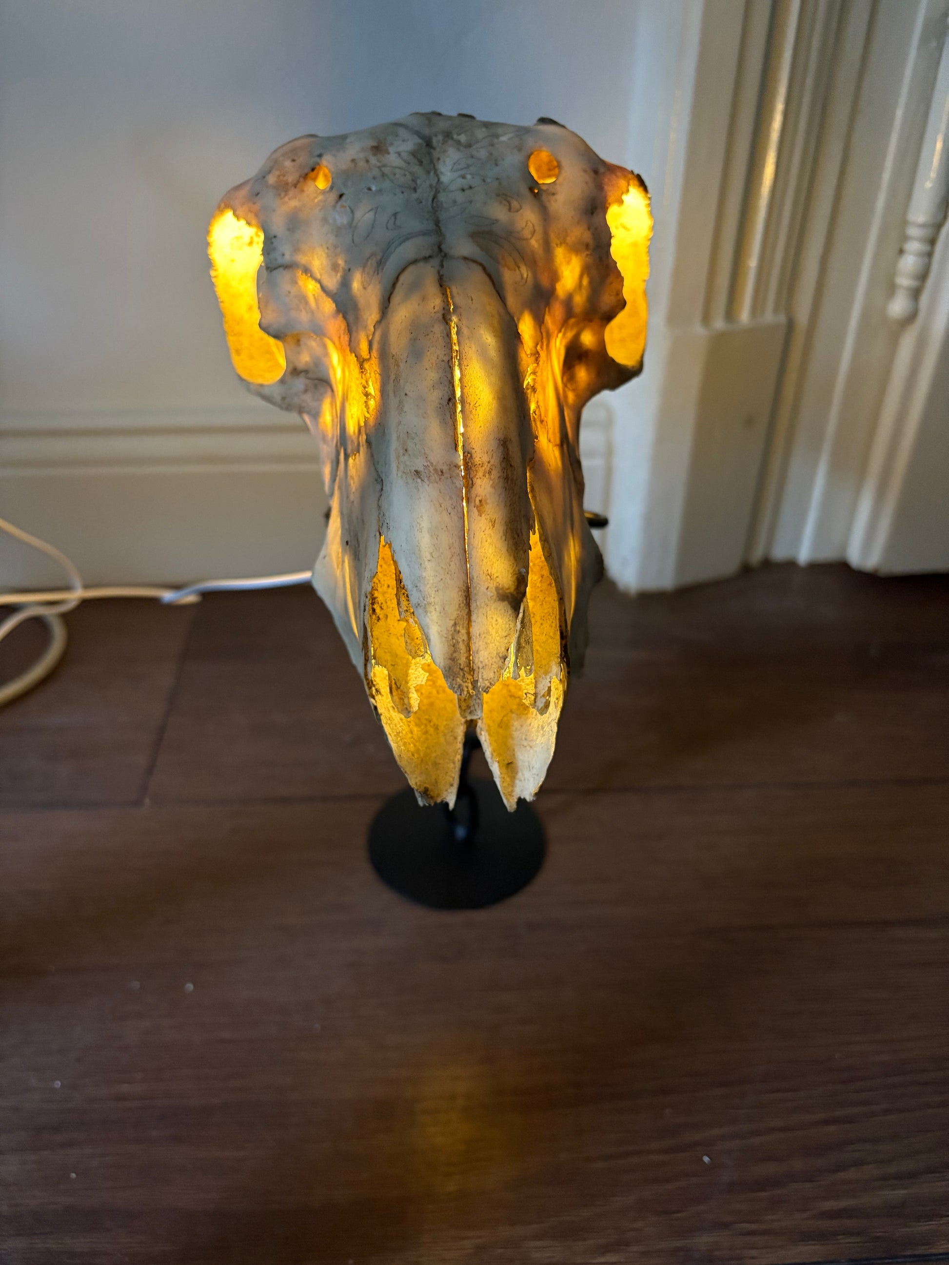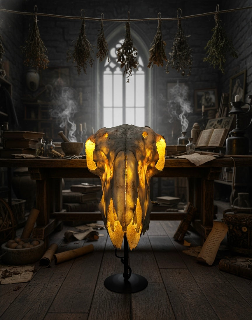 Valódi állati koponyából készült asztali lámpa, hangulatvilágítás, mely garantáltan egyedi dekoráció lesz otthonodban.